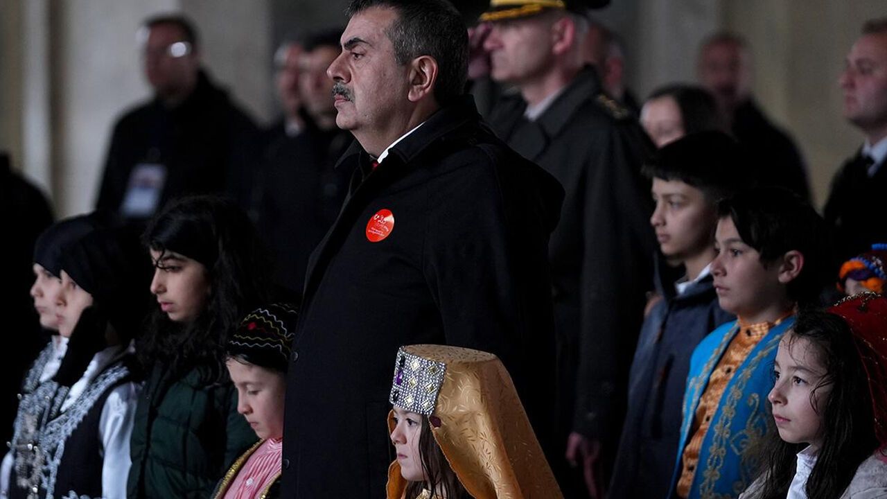Bugün, 23 Nisan 2026 sabahında Milli Eğitim Bakanı Yusuf Tekin; beraberindeki bakanlık bürokratları, öğretmenler ve Türkiye’nin dört bir yanından gelen öğrencilerle birlikte Aslanlı Yol’dan geçerek Gazi Mustafa Kemal Atatürk’ün manevi huzuruna çıktı. Ellerinde Türk bayraklarıyla Ata’sına koşan çocukların eşlik ettiği heyet, mozoleye ulaştı. Bakan Tekin’in mozoleye çelenk sunmasının ardından, katılımcılar saygı duruşunda bulundu ve İstiklal Marşı hep bir ağızdan coşkuyla okundu.