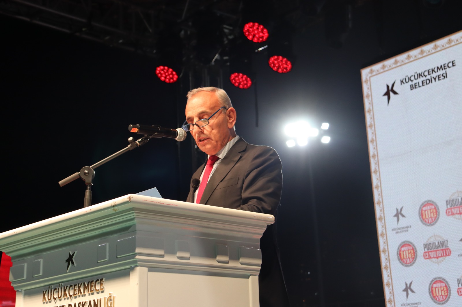 “Değerli Çekmeceliler, çok kıymetli hemşerilerim, çok değerli Cumhuriyet severler ve değerli yoldaşlarım, hepinizi saygıyla, sevgiyle selamlıyorum. Tarihimizin en şanlı, en anlamlı günlerinden birini büyük bir gurur ve tarifsiz bir coşkuyla kutlamak için bir aradayız. Bugün Türkiye Cumhuriyeti'nin kuruluşunun 102. yıl dönümünü, yani bayramını kutluyoruz. Hepiniz tekrar hoş geldiniz bu bayrama.