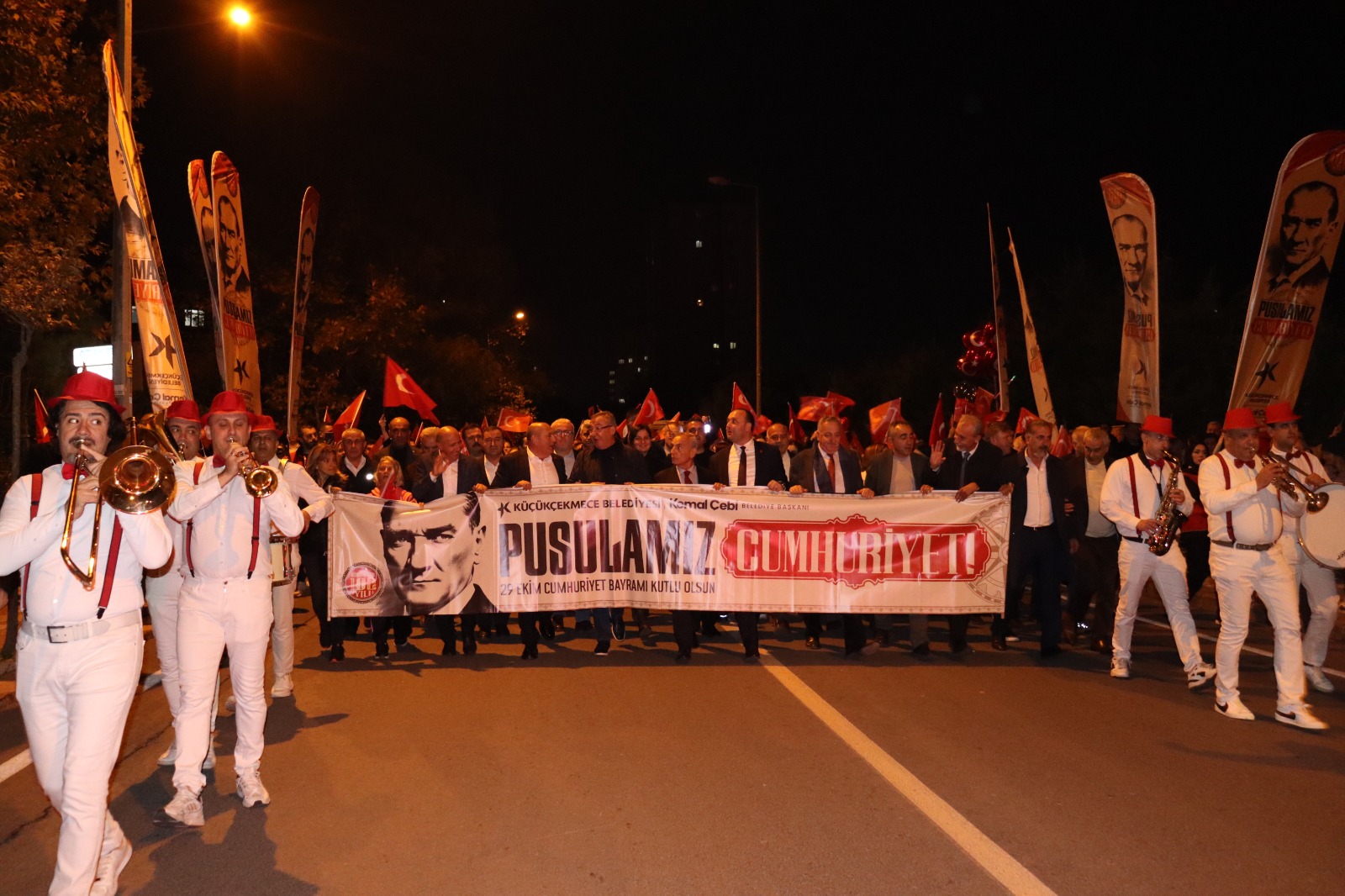 Küçükçekmece, Cumhuriyetin 102. yılını büyük bir coşkuyla kutladı. Atakent Meydan Parkında başlayan yürüyüş, 100. Yıl Stadyumu’na kadar sürdü. Yürüyüşe, Küçükçekmece Belediye Başkanı Kemal Çebi ve CHP Genel Başkan Yardımcısı Özgür Karabat da katıldı. Stadyumda yaptıkları konuşmalarda, Ekrem İmamoğlu’nun serbest bırakılması gerektiğini vurgulayan Çebi ve Karabat, adalet mesajları verdiler.