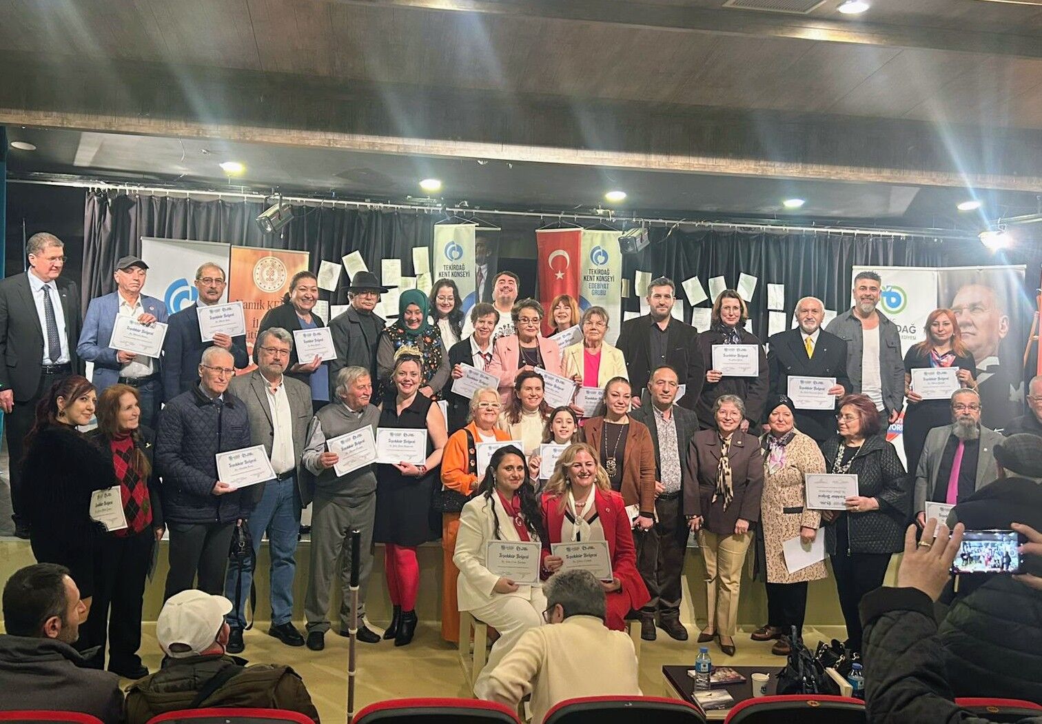 Tekirdağ'da yaşayan şairler Hamdiye Özer, Tuncay Dağlı ve Rakip Ertuğrul Eriz'den oluşan grup 60'a yakın şairin katıldığı şiir dinletisi ve imza gününe renk kattı.