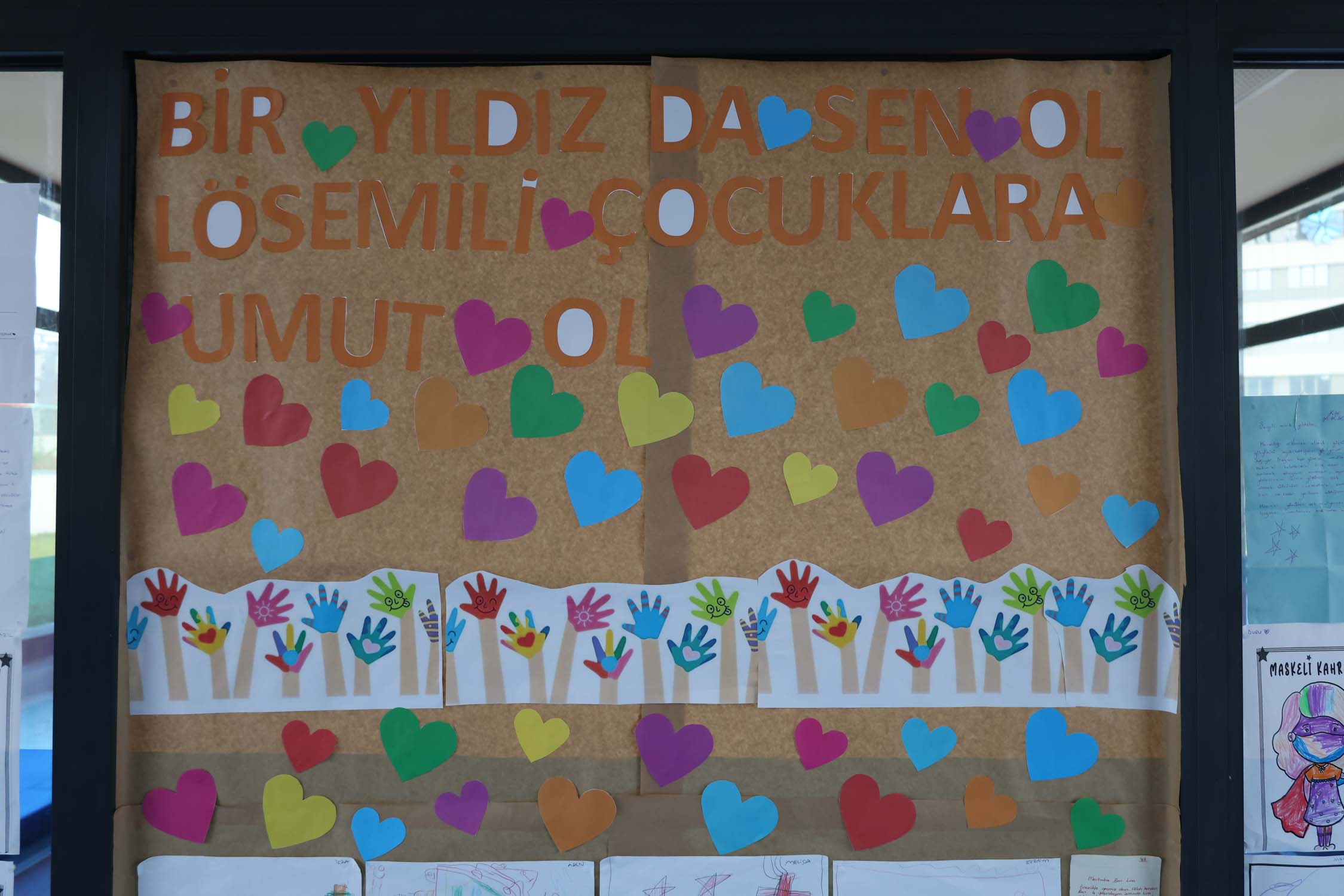 Miniklerin kendi elleriyle hazırladığı rengârenk resimlerde dayanışma, sevgi ve iyileşme temaları öne çıktı. Çocuklar, çizdikleri resimlerin önünde hep bir ağızdan “Bir umutta sen ol!” diyerek lösemili arkadaşlarına moral gönderdi.