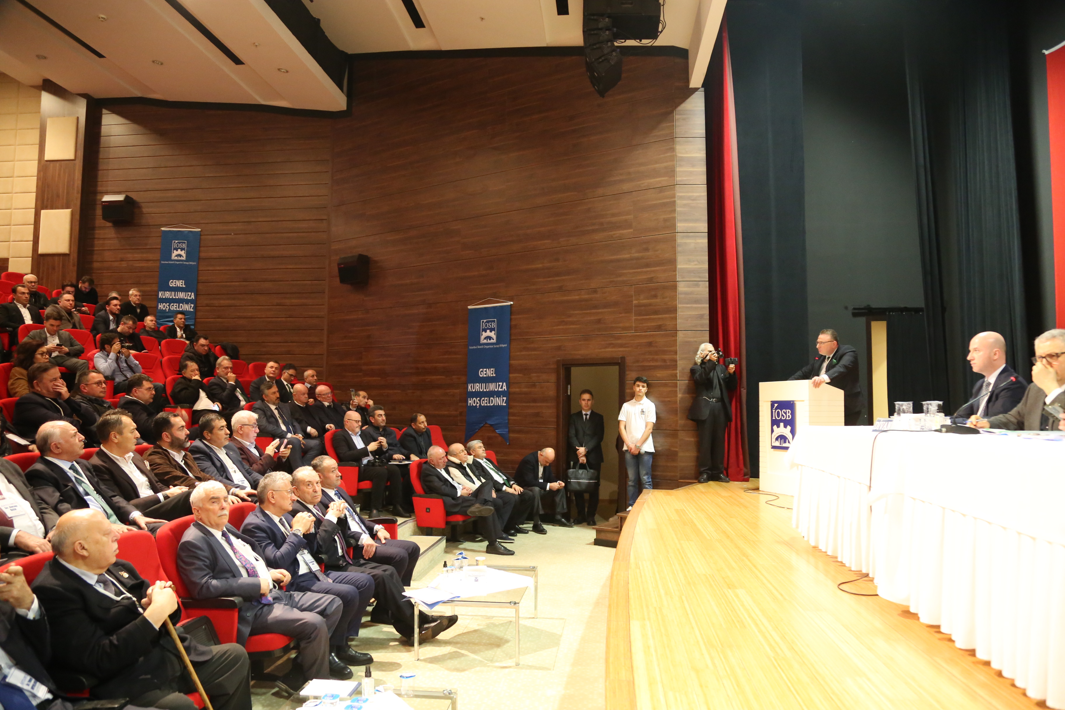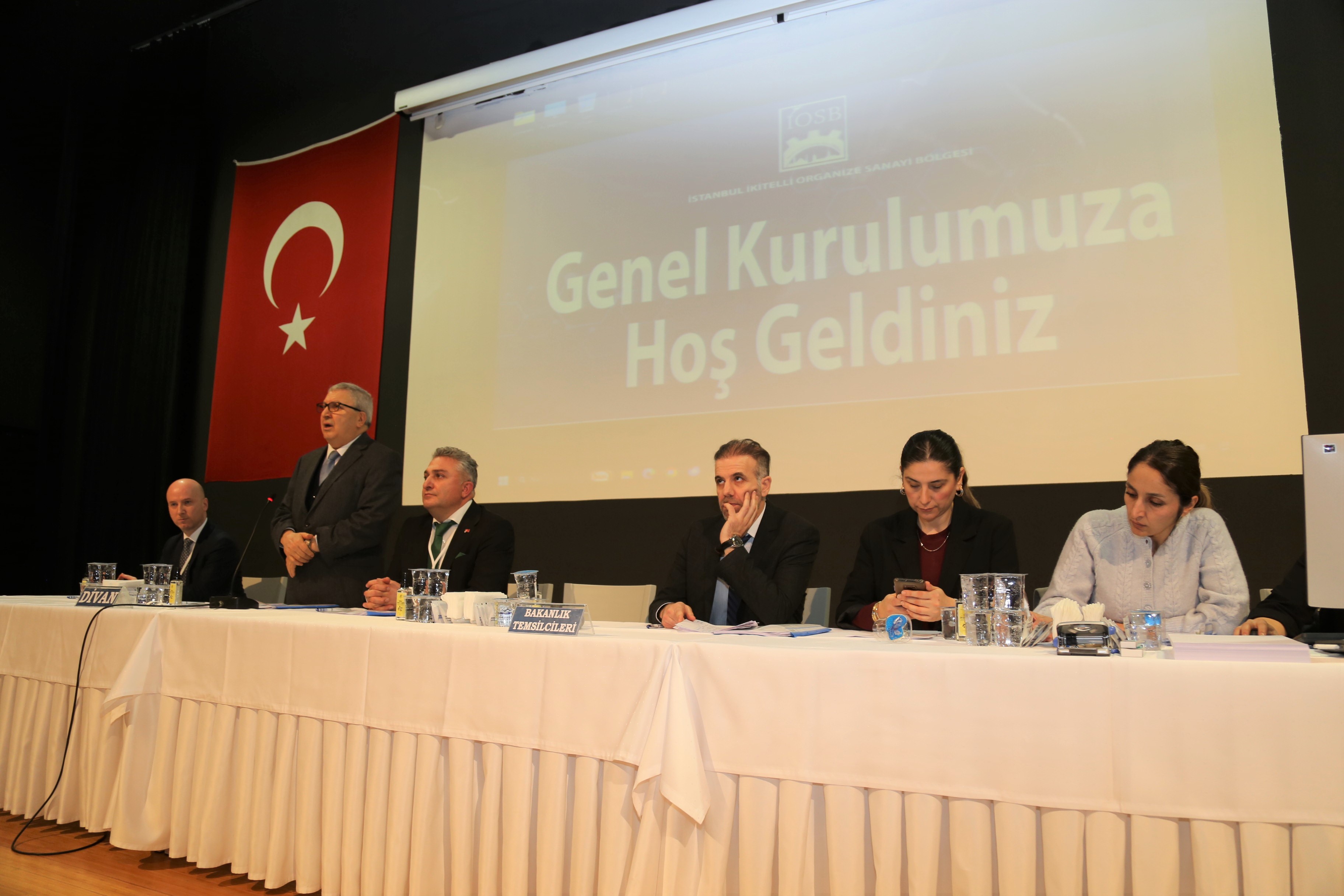 Genel Kurul üyeleri toplantı salonunda yerlerini aldıktan sonra İlknur Kaplan’ın davetlilere yönelik hoş geldin sunumunun ardından İkitelli Osb Yönetim Kurulu Başkanı Mustafa Keskin bilgilendirme ve konuşmasına geçmeden önce davetlilere yönelik hoş geldin konuşması yaptı.