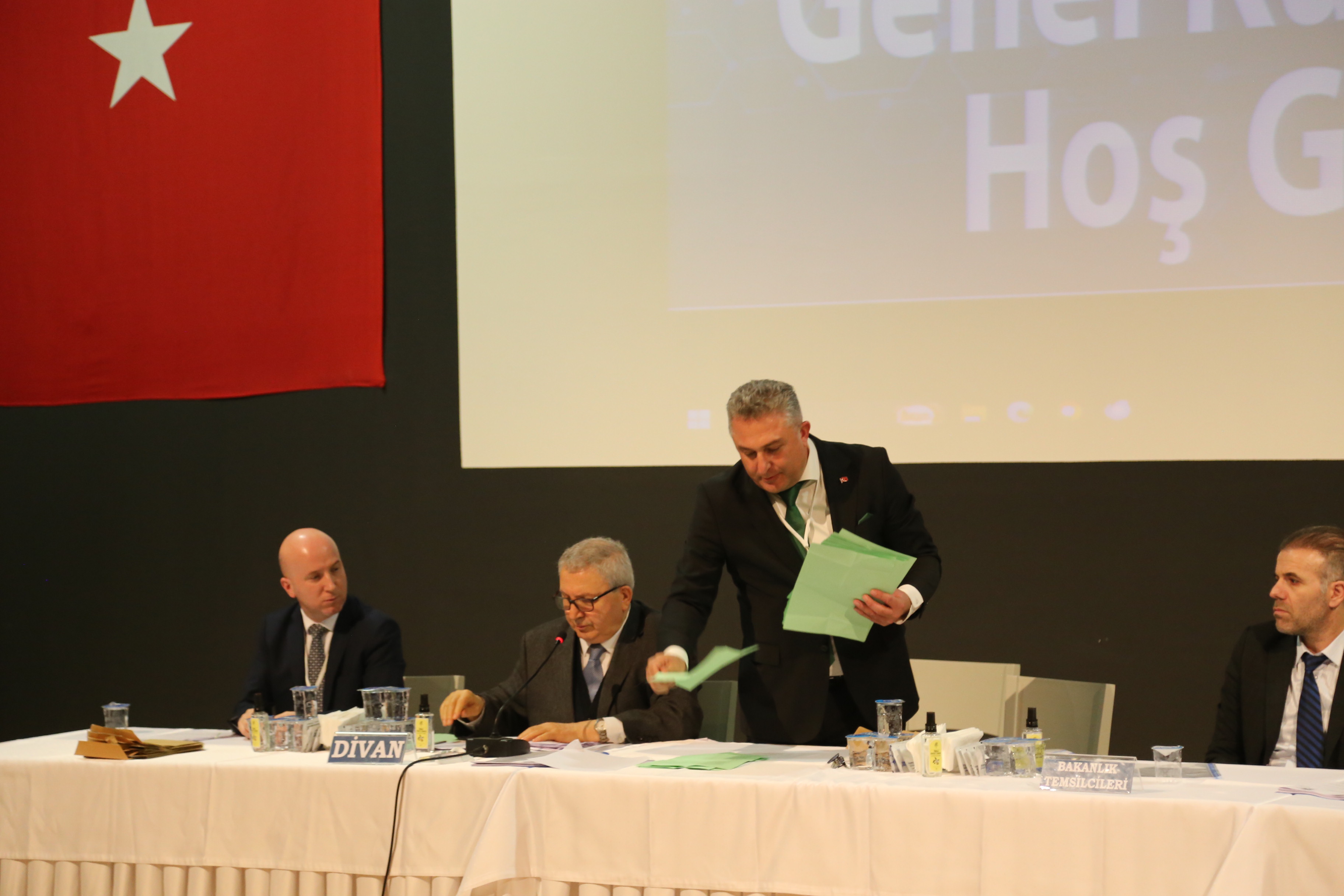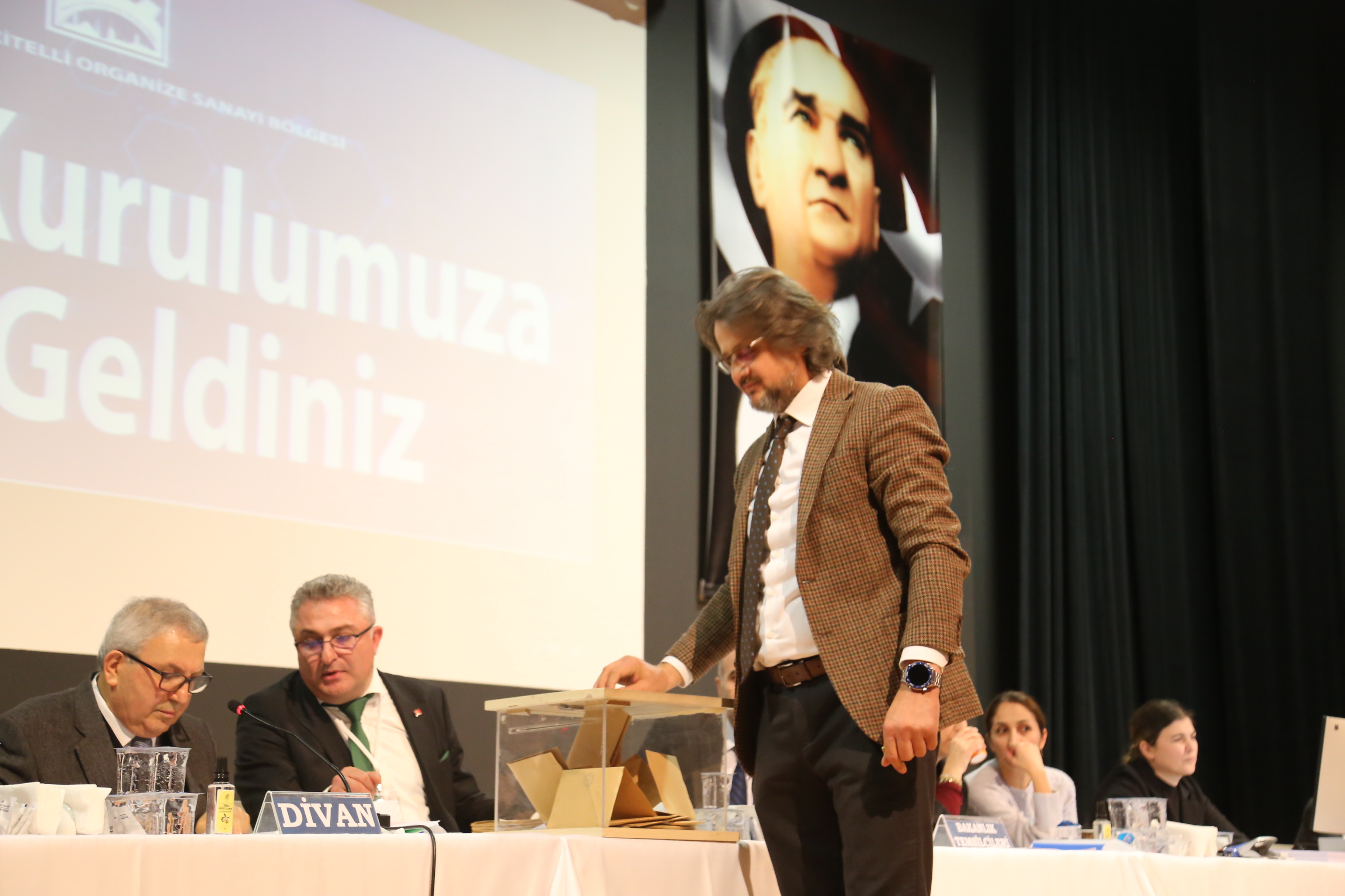 Mustafa Keskin, Genel Kurulun açılış konuşmasında Bölge adına birlik ve beraberlik mesajı vererek kendinin başkanlıktan çekilmesiyle başkanlık için yarışacak olan Nuri Konak ve Mehmet Mutlu’ya başarılar diledi ve başkan adaylarını kürsüye davet ederek tebrik etti. 19 maddelik genel kurul gündem maddelerinin okunup, müzakere edilip, oylanması aşamalarını sevk ve idare edilmesiyle ilgili Divan Heyeti Seçimine geçildi. Divan Başkanlığı için iki liste oluştu. Sebahatdin Kayas başkanlığındaki divan heyeti listesine karşılık Yusuf Akgün başkanlığında ki divan heyeti oy çokluğu ile divan heyeti olarak seçildi. Yusuf Akgün Başkanlığında ki Divan Heyeti olağan seçimli genel kurulu yönetmek üzere yerlerine geçtiler. Yusuf Akgün Başkanlığında ki divan heyetinde Metal İş Yönetim Kurulu Başkanı Vedat Urak ile Esenler Sanayi Sitesi Yönetim Kurulu Başkanı Fatih Dönmez yer aldı.