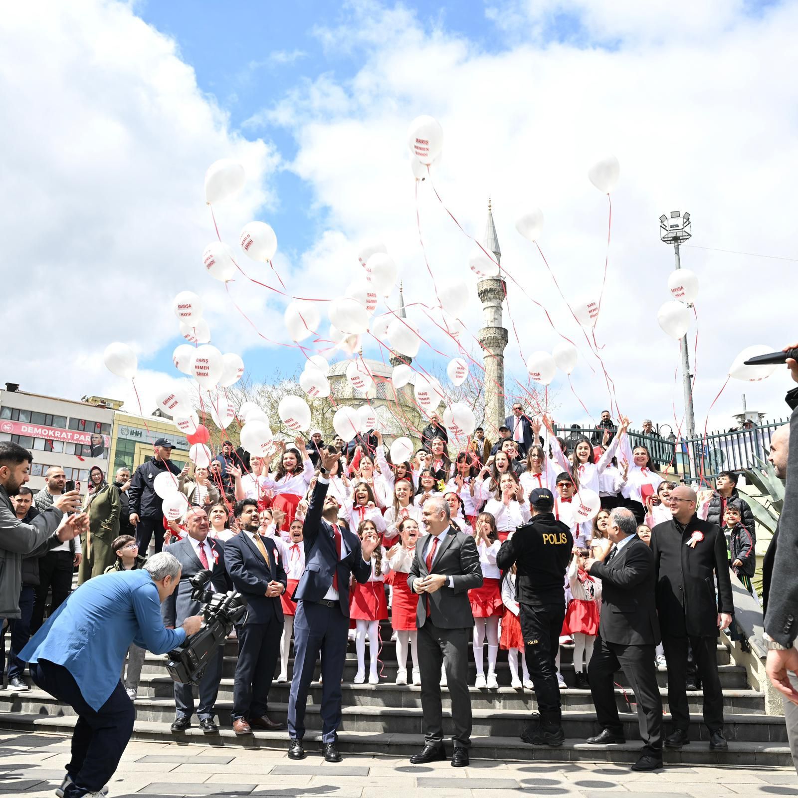 Programın sonunda Gaziosmanpaşa Kaymakamı İskender Yönden ile birlikte barışı simgeleyen iki güvercin gökyüzüne bırakıldı. Ardından çocuklar tarafından uçurulan beyaz balonlar, barış ve umut dilekleriyle gökyüzüne yükseldi.