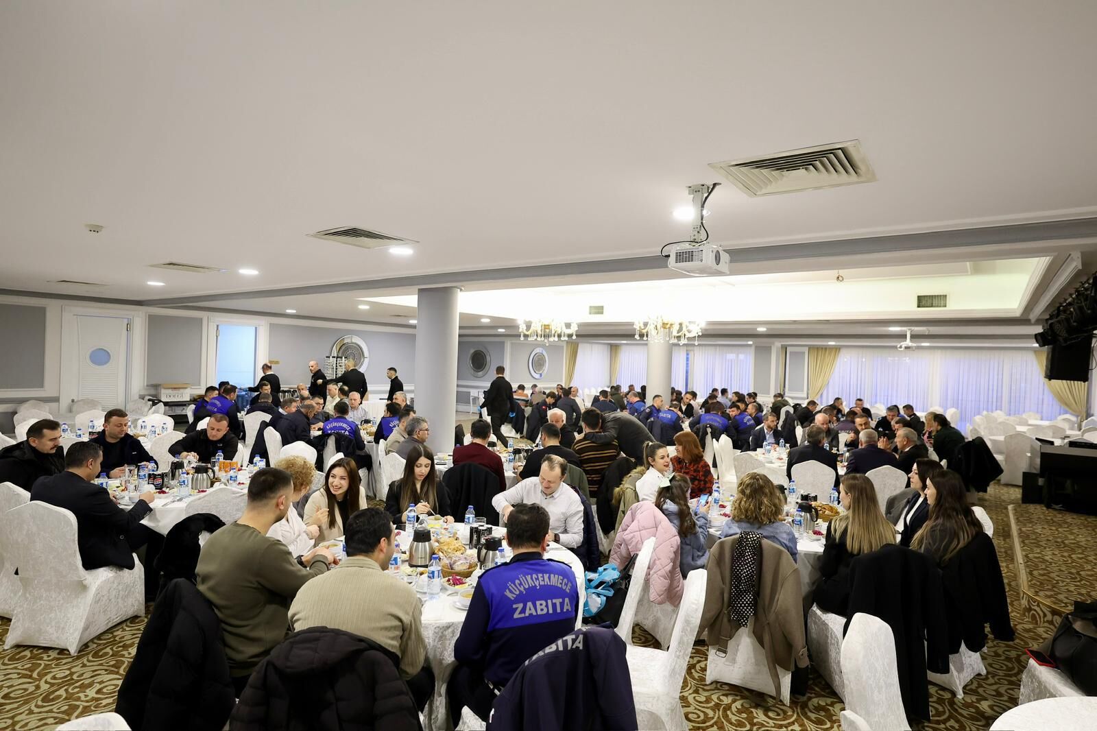 Küçükçekmece Belediyesi Zabıta Müdürlüğü’nün geleneksel hale getirdiği iftar programı, Ramazan ayının manevi atmosferinde birlik ve beraberlik mesajlarının verildiği anlamlı bir buluşmaya sahne oldu. Lagün Davet Salonu’nda düzenlenen programa Küçükçekmece Belediye Başkanı Kemal Çebi, Zabıta Müdürlüğü’nden sorumlu Belediye Başkan Yardımcısı Mehmet Emin Ay, Zabıta Müdürü Ergün Tarım, belediye başkan danışmanları, müdürler, meclis üyeleri ve çok sayıda belediye çalışanı katılım sağladı.