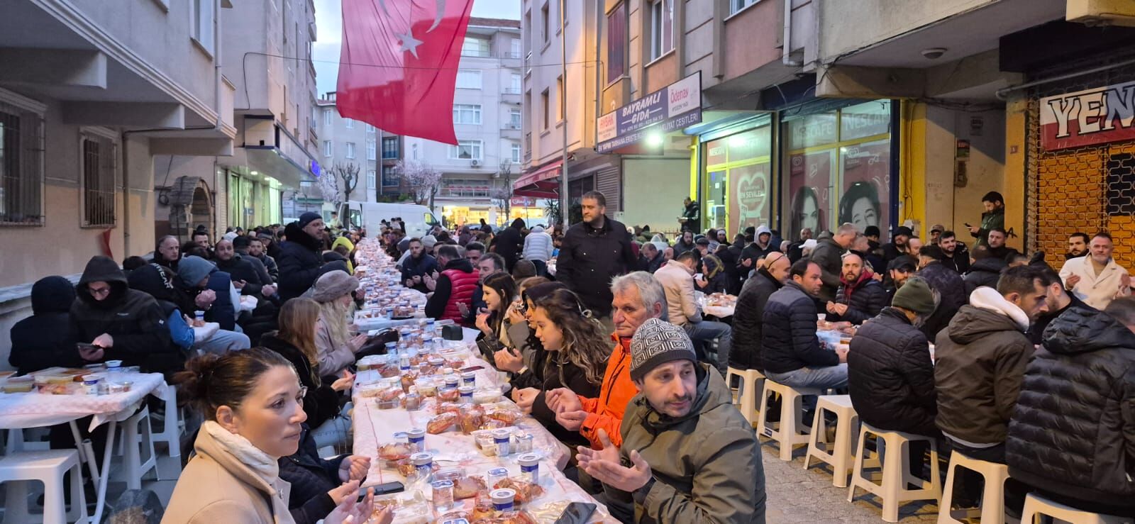 İstanbul’un hızla dijitalleşen ve yalnızlaşan metropol yaşamına inat, Küçükçekmece Yenimahalle’de dün akşam "komşuluk" dersi verildi. Yenimahalle gençlerinin 12 yıl önce bir avuç arkadaşla başlattığı sokak iftarı girişimi, bu sene adeta bir toplumsal kenetlenme hareketine dönüştü. Soğuk havaya rağmen sokağa dökülen mahalle sakinleri, kurulan 5 bin kişilik dev sofrada sadece oruçlarını değil, dostluklarını ve paylaşımlarını da bölüştü.